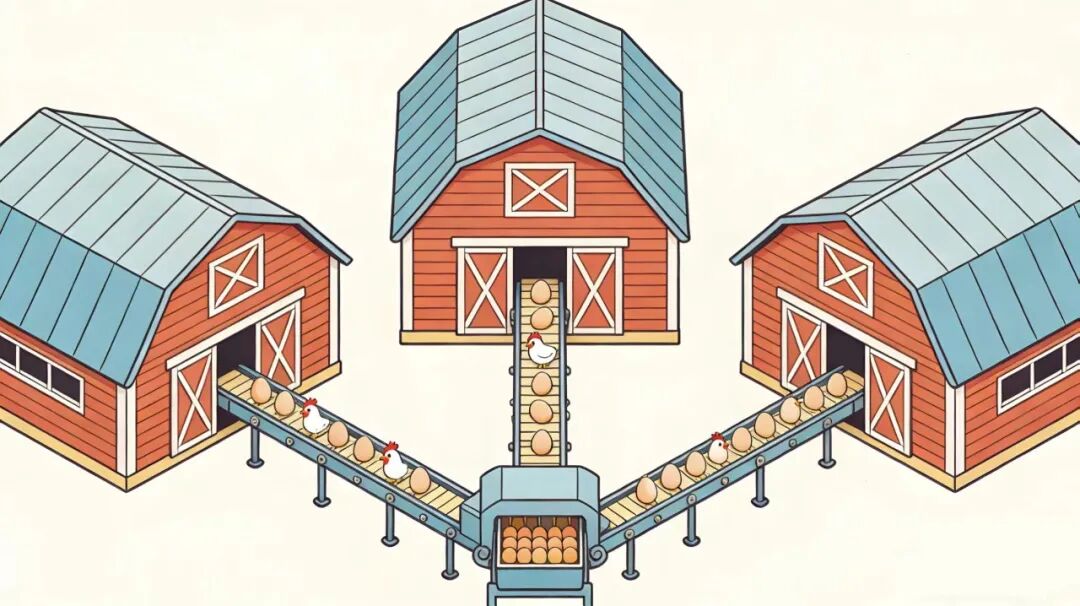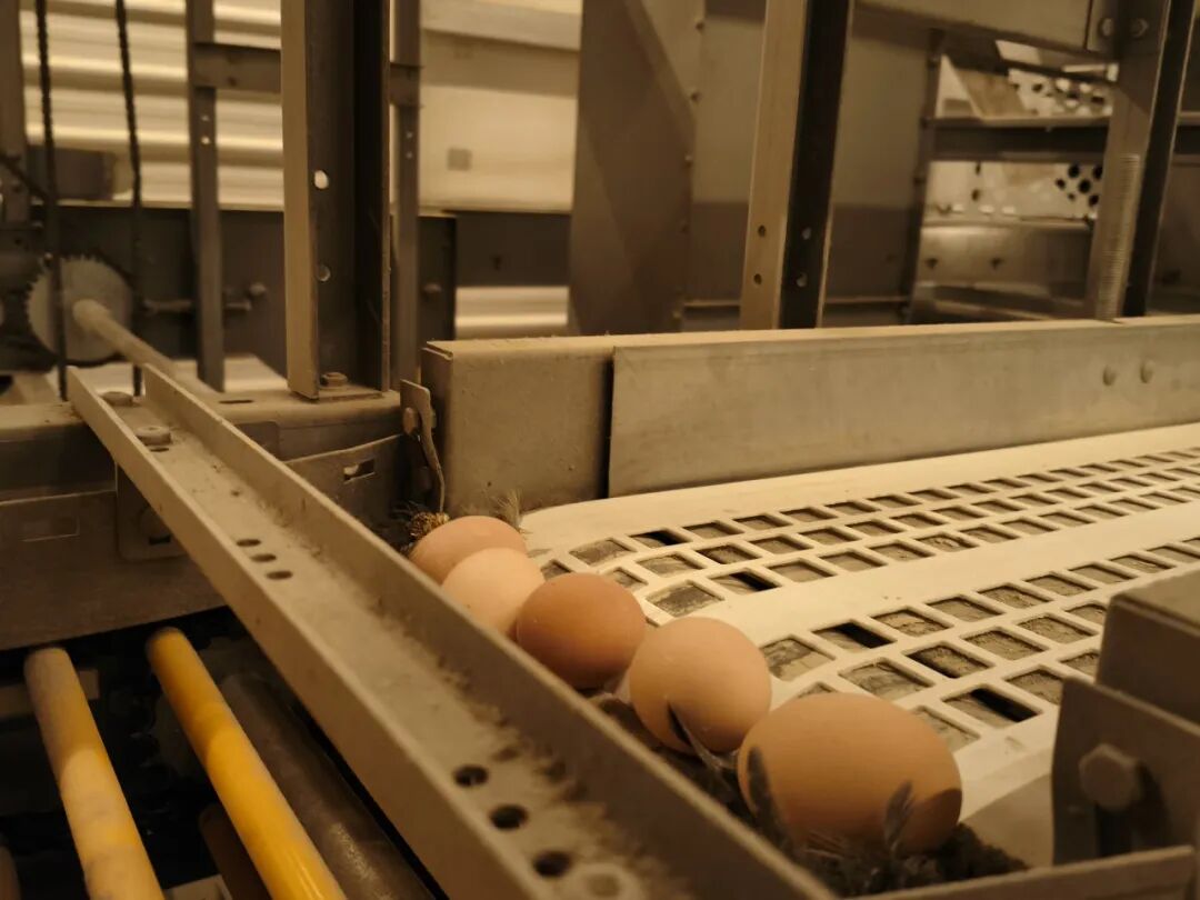 每一栋鸡舍的一侧,都铺设了专用的传输管道,就像一条条“鸡蛋专属高速路”,稳稳托住每一颗种蛋,为它们遮风挡雨,将分散在各个鸡舍的种蛋统一汇聚到同一个处理中心。全程密闭传输,干净又高效,再也不用人工搬运,省去了不少麻烦。