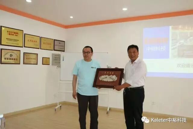 On behalf of Zhongyu Science and Technology, Mr. Liu and Mr. Sun presented souvenirs to Jiyao Hall-Dinosaur Paper-cut.↑